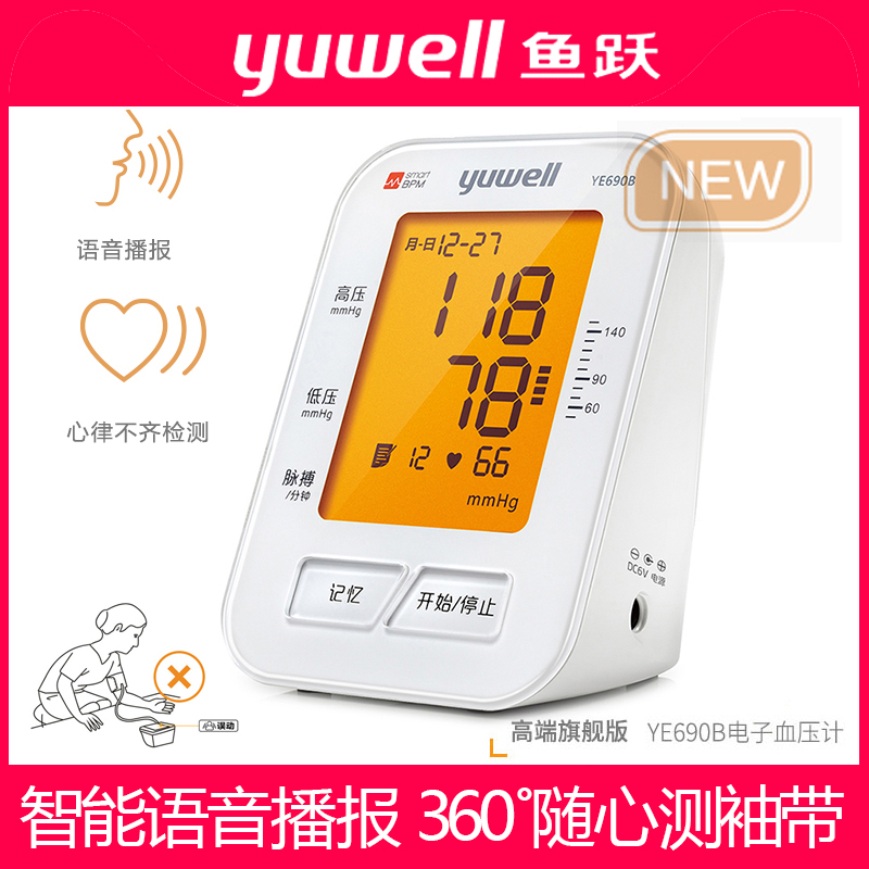 江蘇魚躍臂式電子血壓計YE690B(語音款)