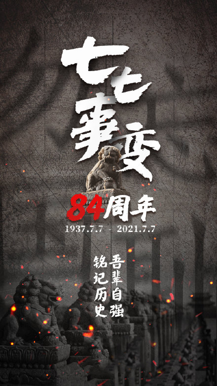 今天是七七事變84周年 ,84年前的今天,已經實現工業化的日本開始了全面侵華。如今硝煙已散,但曾將的苦難不能忘,無數犧牲不敢忘!銘記這一天,悼念同胞,永懷先烈,吾輩自強!