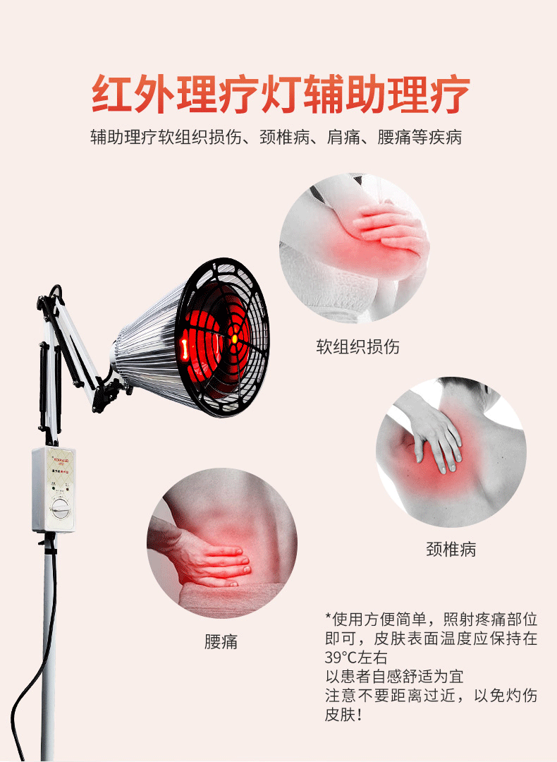 1、紅外線烤燈是利用其良好的熱力系統(tǒng)滲透教育作用可明顯可以起到具有消炎鎮(zhèn)痛、活血化瘀的功能。