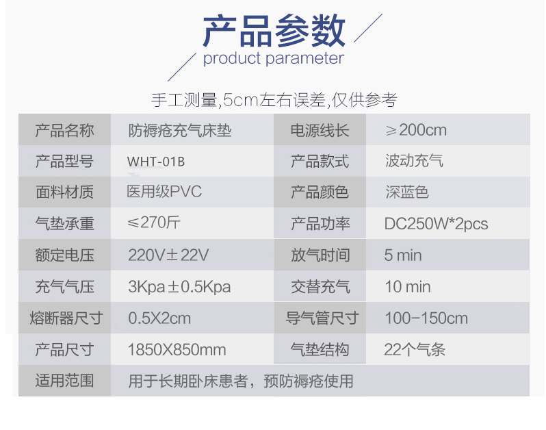 冠悅 電動(dòng)防褥瘡氣床墊WHT-01B/WHT-03B(帶便)